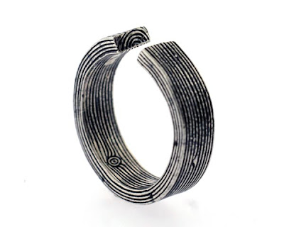 The 2x4 ring is painstakingly engraved with wood grain detail both inside and out, we're especially proud of the end-grain detail. The ring measures 1/4" wide by just under 1/8" thick and is available in oxidized sterling, vermeil or with a diamond set into the knot. Prices for solid 14k gold are available upon request.